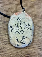 Molded with ceramic, cured, and painted. Leather loop included
